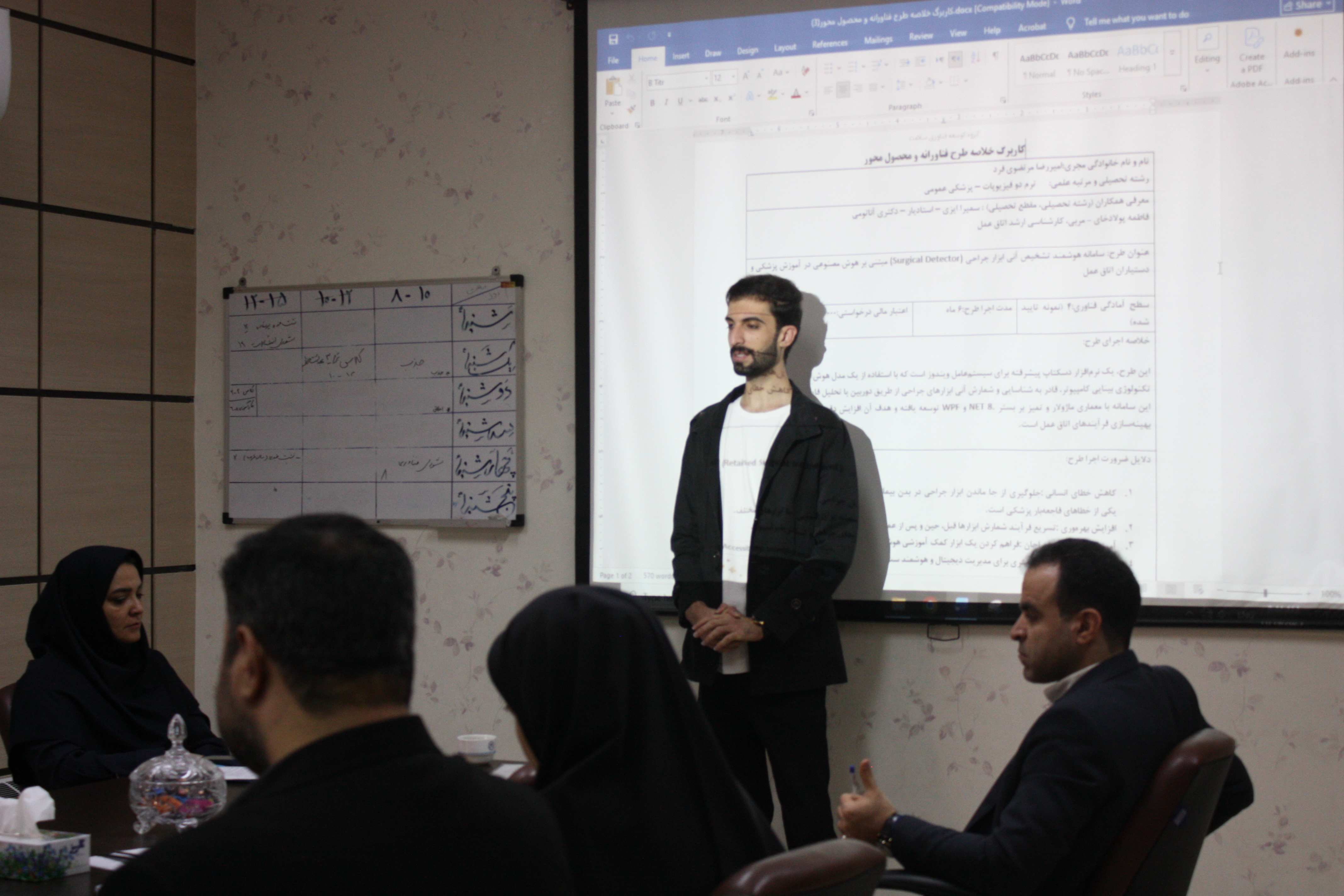 در این نشست، چند طرح فناورانه از سوی یکی از دانشجویان دانشگاه ارایه و مورد بررسی اعضای شورا قرار گرفت. مقرر شد برخی از طرحها در سطوح پایلوت اجرا شده و زمینه لازم برای دریافت حمایتهای سازمانی در سطح استانی و ملی فراهم گردد.